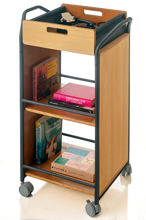 Com dimensões de 103 cm de altura e 44 cm de largura, a Estante Volante é compacta e pode ser facilmente movimentada entre diferentes ambientes. Para facilitar a organização, essa estante com rodinhas está disponível em duas versões: com uma caixa (61,5 cm de comprimento) ou duas caixas organizadoras (106 cm de comprimento).
