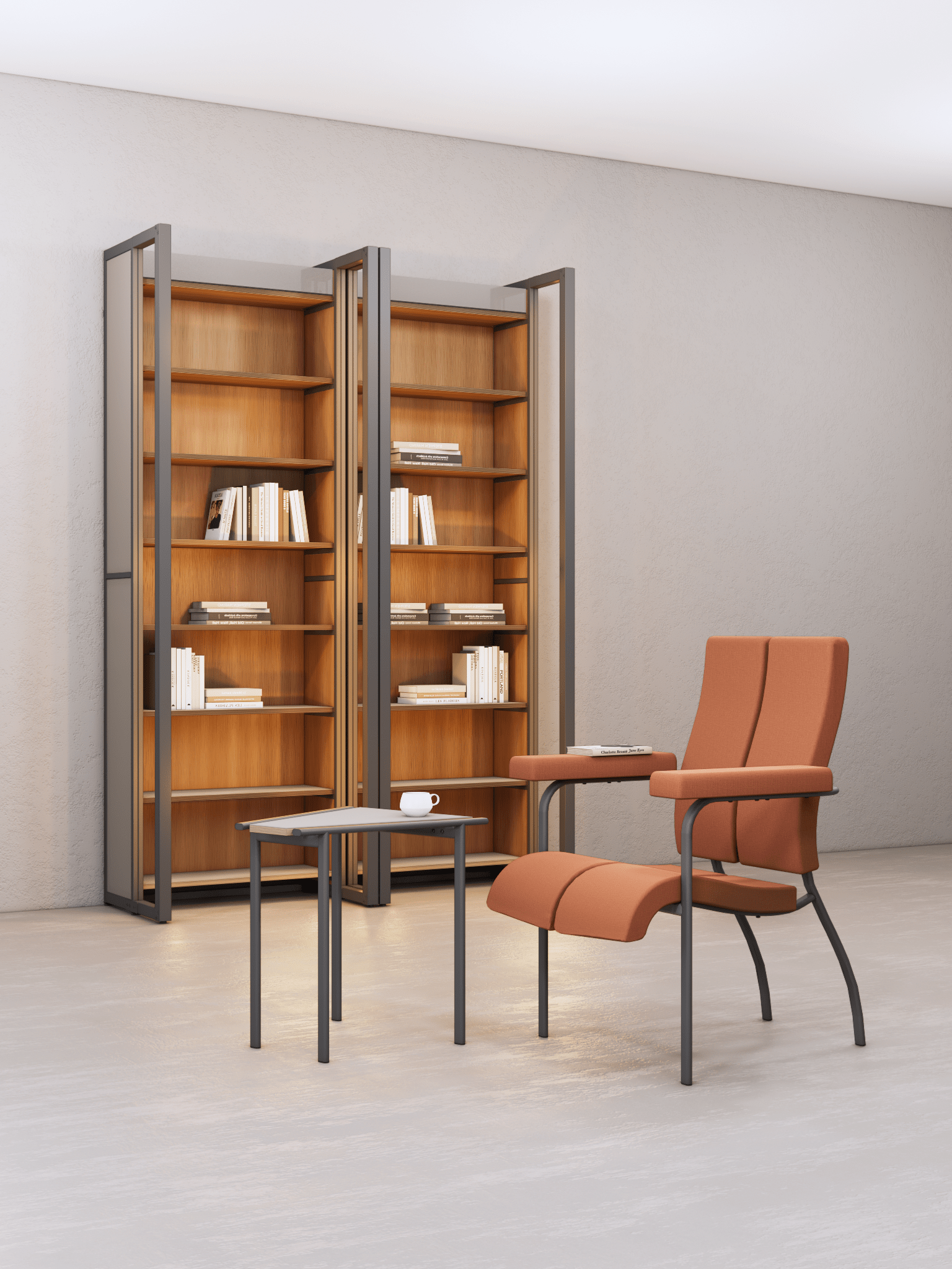 A Mesa Auxiliar Flip foi criada para a Festa Literária Internacional de Paraty e encaixa-se com facilidade em espaços de leitura, de foco ou descompressão, e pode ser usada de forma independente ou em conjunto com a Poltrona Flip.