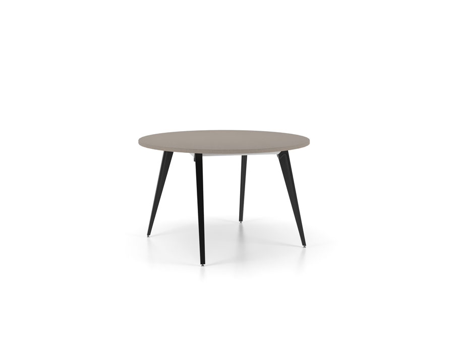 O tampo da mesa de reunião redonda é em MDP de 25mm com revestimento melamínico de baixa pressão, com acabamento em diferentes opções de cores e texturas para agregar qualidade e beleza ao produto, o que destaca a versatilidade da linha Connect para diferentes projetos.